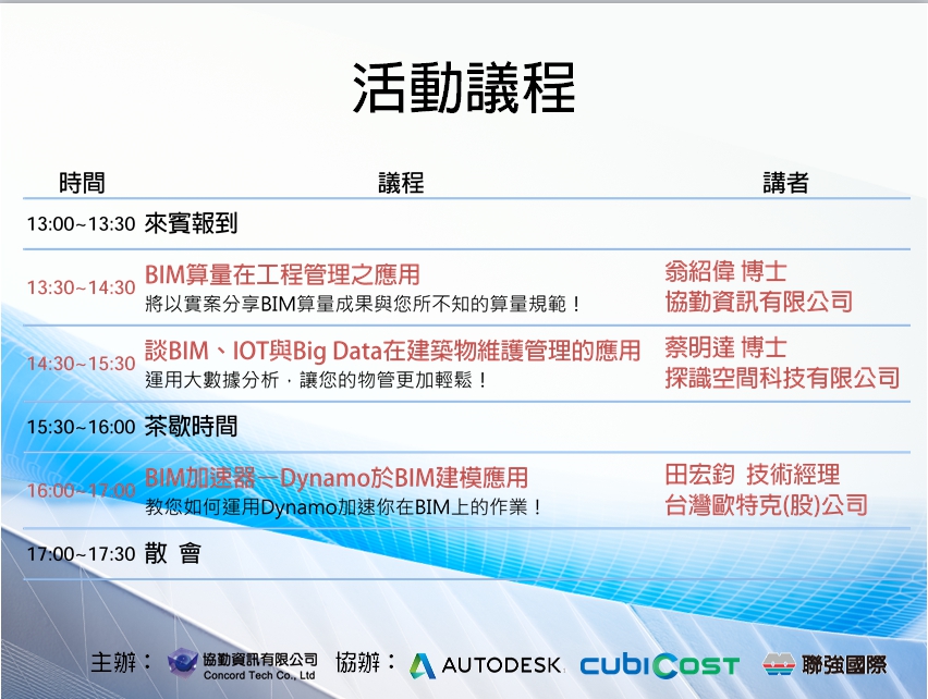 2019 協勤台中展會-Cubicost新品發表暨BIM plus研討會 | 13 | - | |
