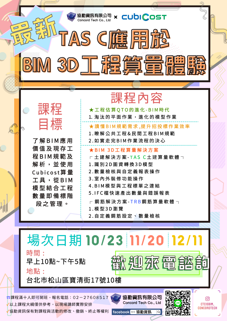 2019-Q3 最新TASC應用於BIM工程算量一日體驗 |