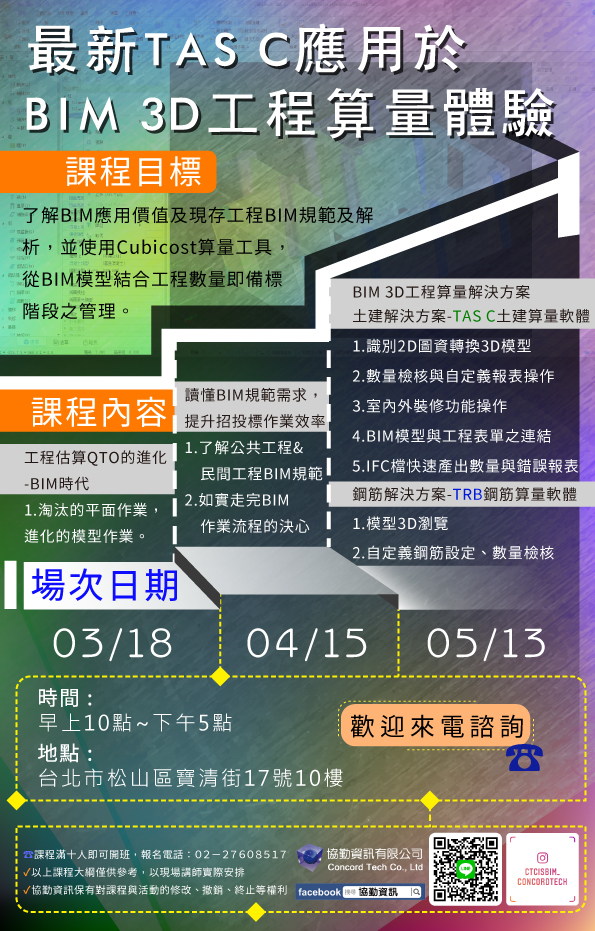 0505【Early Bird 早鳥計畫】TASC基礎培訓:BIM 3D工程算量 |