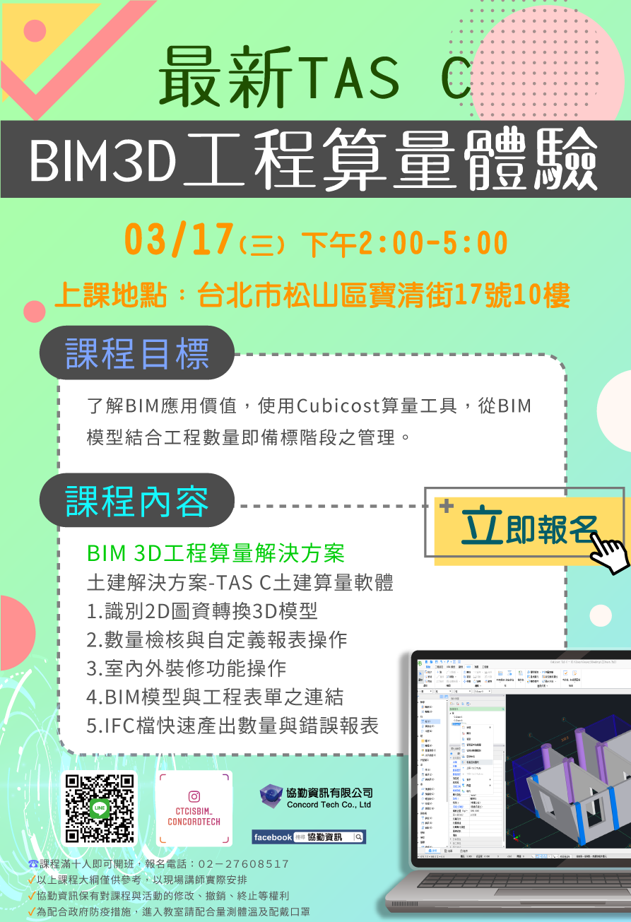 2021-Q1-最新TAS C應用於BIM工程算量一日體驗 |