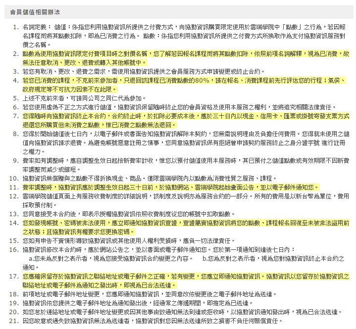 以下為會員新增條約,請您務必詳細閱讀並了解,修訂後之內容自雲端學院公告發佈後一個月效。(2015/1/1)